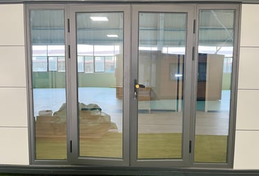 Puertas de aluminio con doble vidrio, pensadas como acceso principal, que aportan hermeticidad, presencia y mayor aislación.