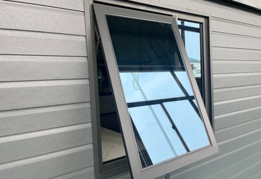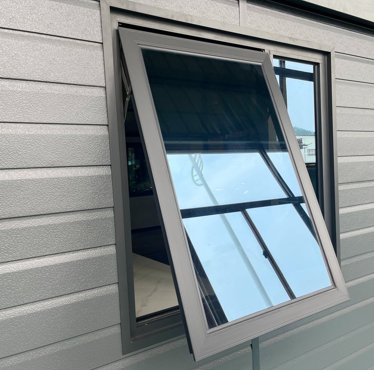 Ventana proyectante que permiten ventilación controlada, manteniendo seguridad y protección frente a la intemperie.
